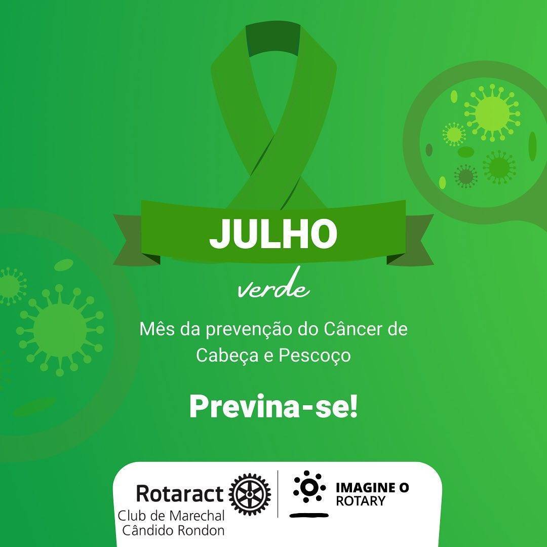 Nesse mês o Rotaract club de Marechal Cândido Rondon lembra da campanha de conscientização Julho verde, que nos alerta sobre a prevenção do câncer de cabeça e pescoço.
