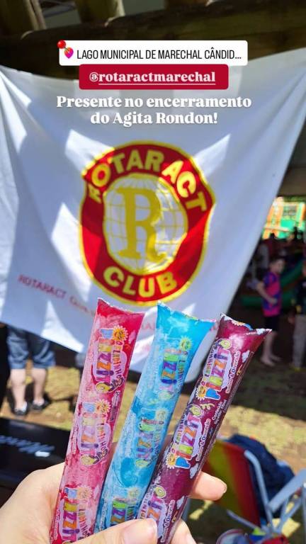 No mês de outubro, o Rotaract Club de Marechal Cândido Rondon marcou presença no encerramento do Agita Rondon 2024 com a ação “Refresca Rondon”, em comemoração ao Dia das Crianças. A iniciativa foi realizada em parceria com a Secretaria de Esporte e Lazer do município e consistiu na distribuição gratuita de geladinhos e picolés para o público infantil presente.