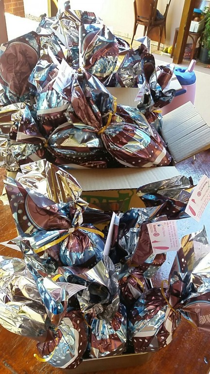 Durante a semana que antecedeu a páscoa, os sócios do clube preparam com muito carinho os ovos de chocolates que forram distribuídos para todas as crianças do projeto, deixando uma mensagem alegria e gratidão a todos.