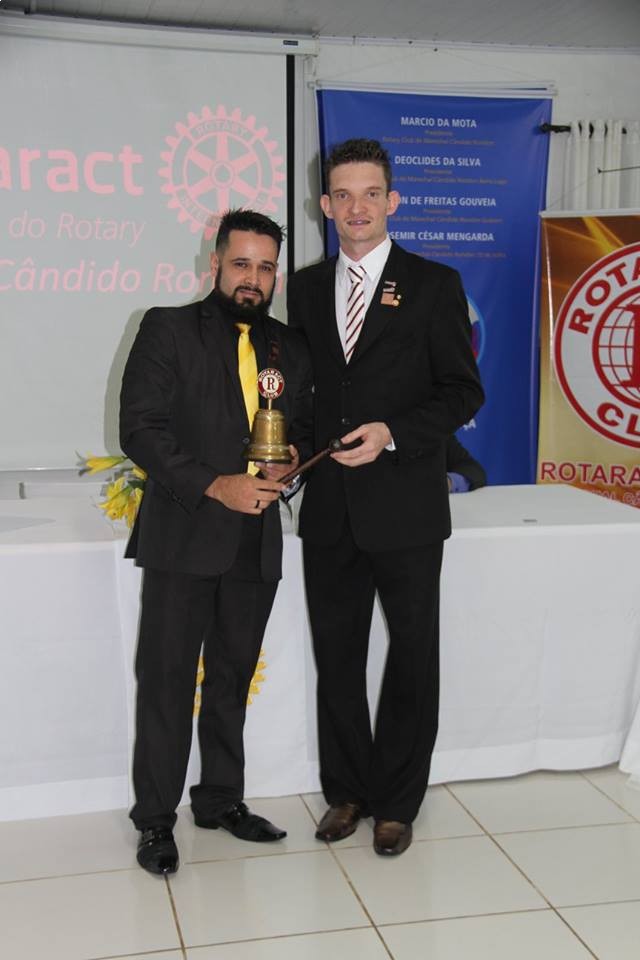 O martelo e o sino foram entregues ao novo presidente, Diego Natan Cardoso, que será responsável pela gestão 2017/2018 sob o Lema O Rotary Faz a Diferença.