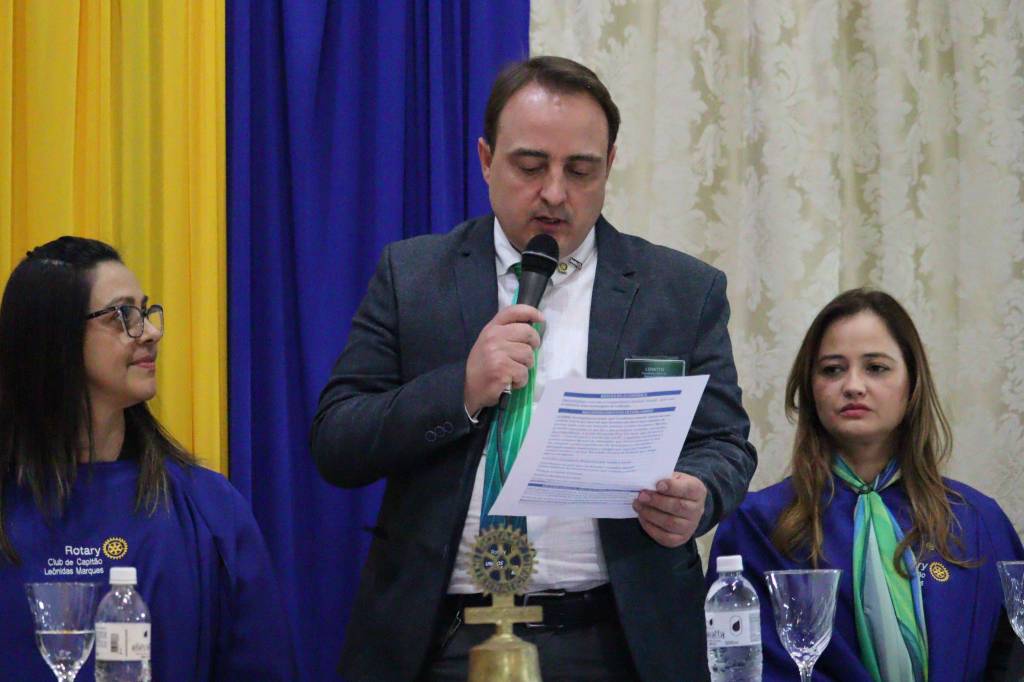 Na sequência, Edinei Antônio Lovatto assumiu oficialmente a presidência do clube para o período 2025/2026. Em seu primeiro pronunciamento como líder da nova gestão, Lovatto enfatizou o compromisso com a mensagem rotária "Unidos para Fazer o Bem", escolhido pelo presidente de Rotary International, Francesco Arezzo.