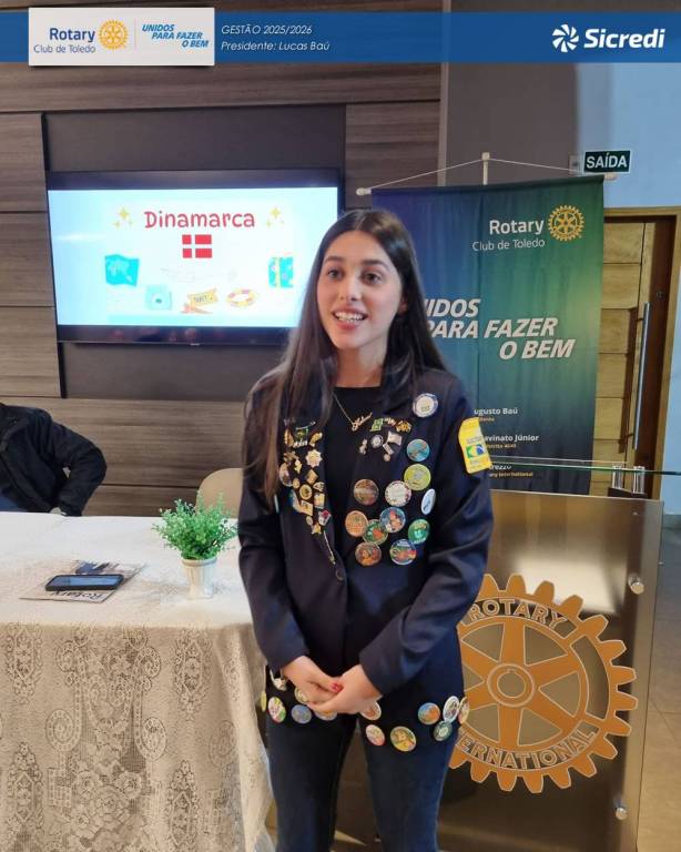 A jovem Helena, intercambista em preparação para sua viagem à Dinamarca através do programa de Intercâmbio de Jovens do Rotary, também foi apresentada oficialmente aos companheiros, sua participação reforça o compromisso do clube com o desenvolvimento de lideranças jovens e o fortalecimento do espírito rotário em nível internacional.