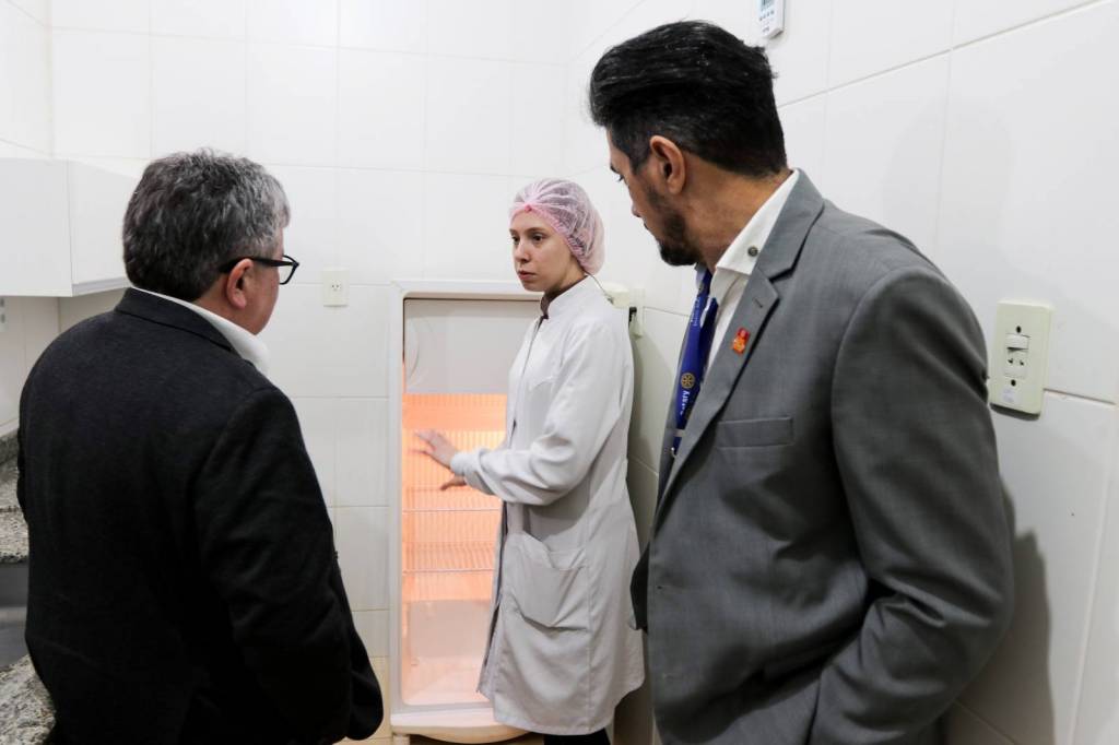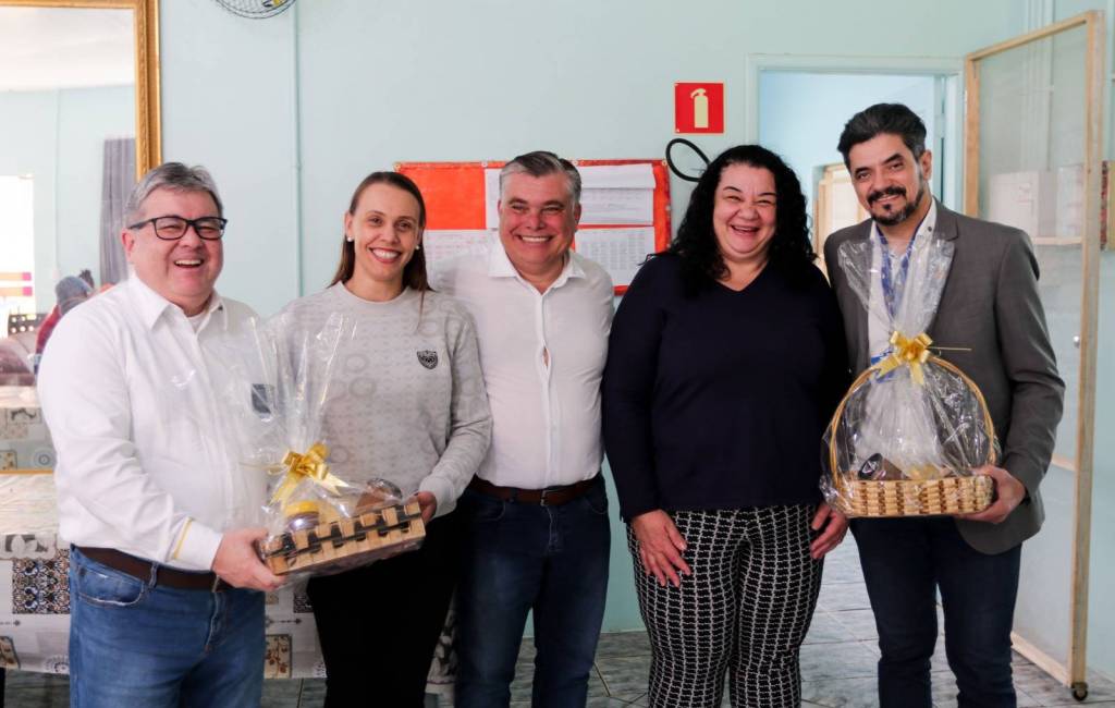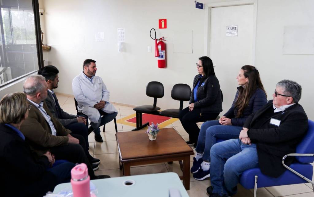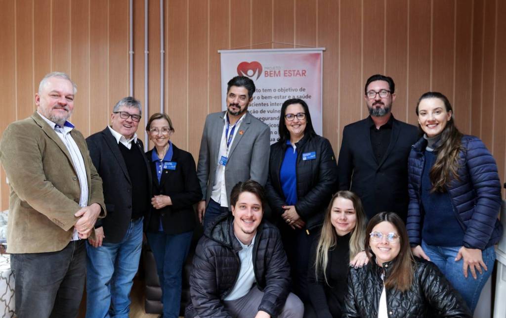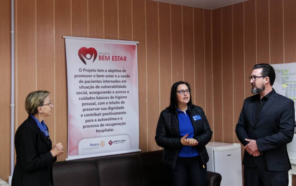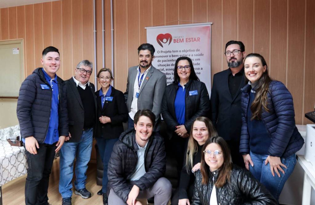 Na sequência, a comitiva seguiu para o Hospital Santa Casa, onde foi apresentado o Projeto Bem-Estar, que garante kits de higiene pessoal a pacientes em situação de vulnerabilidade. Logo após, o grupo visitou o Hospital Beneficente Moacir Micheleto, onde o governador conheceu o Projeto Amor Amigo – iniciativa que oferece a cada recém-nascido uma touca de lã confeccionada pela companheira Renate Berwig. Schiavinato demonstrou grande admiração pela ação.