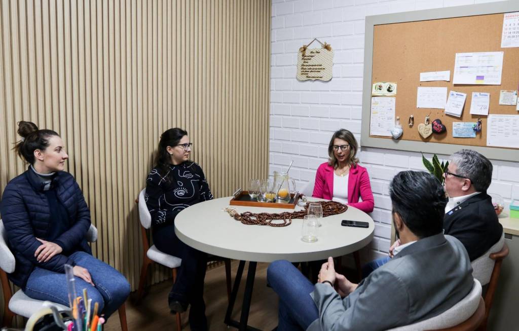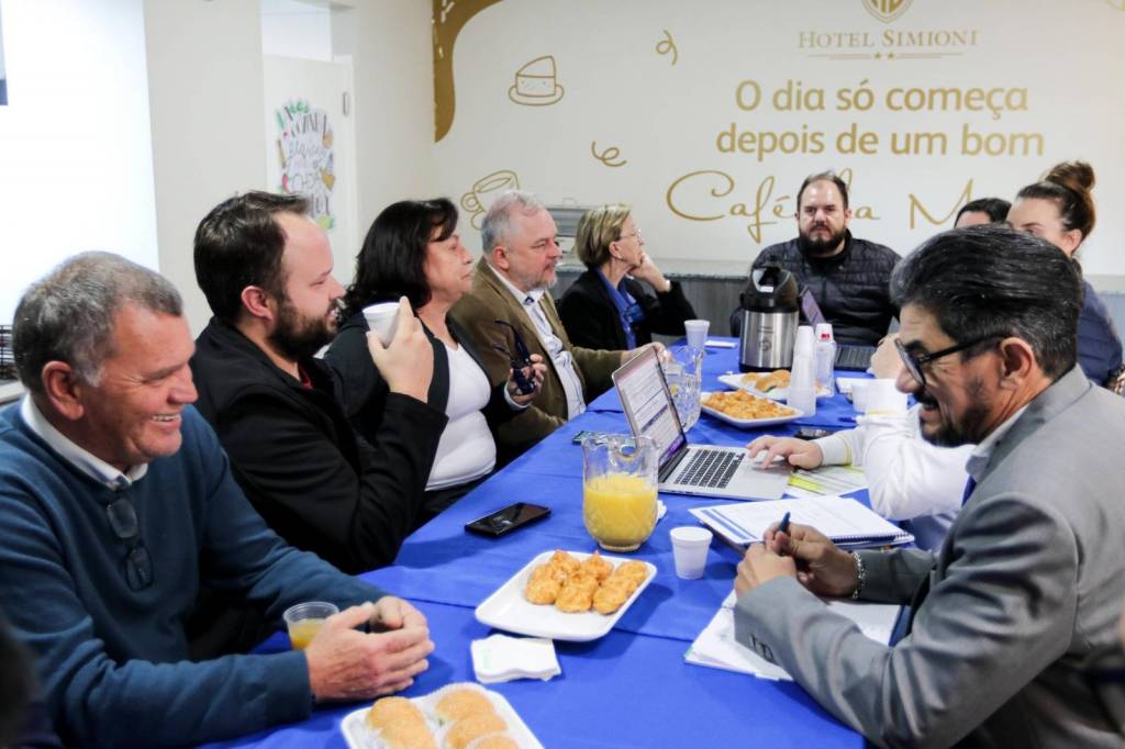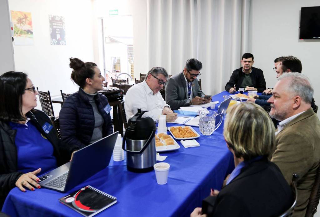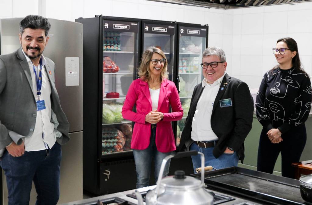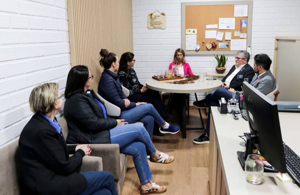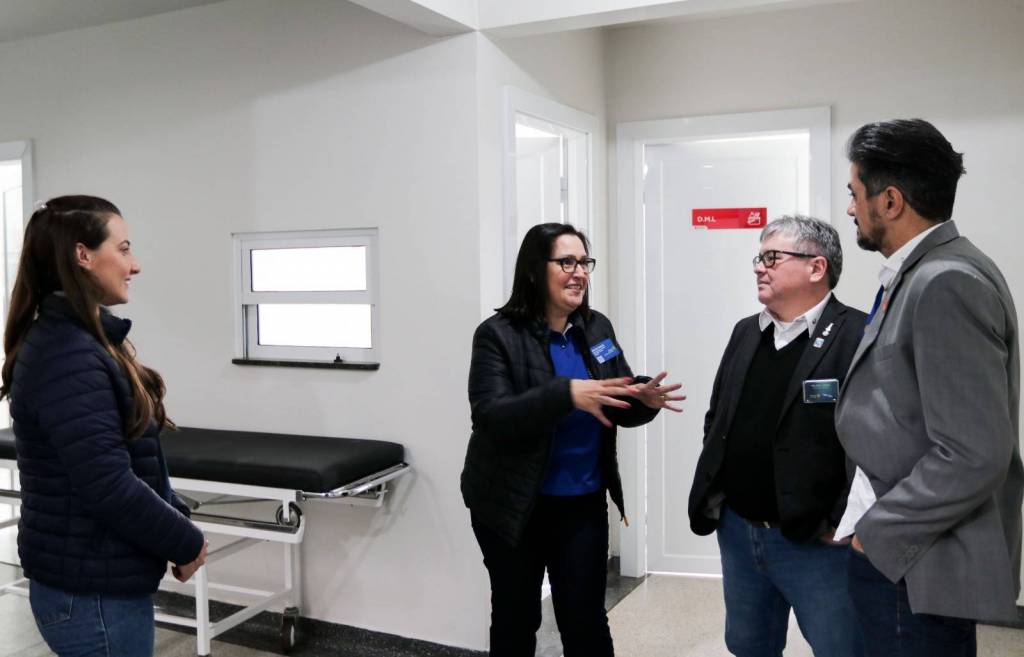 Na sequência, a comitiva seguiu para o Hospital Santa Casa, onde foi apresentado o Projeto Bem-Estar, que garante kits de higiene pessoal a pacientes em situação de vulnerabilidade. Logo após, o grupo visitou o Hospital Beneficente Moacir Micheleto, onde o governador conheceu o Projeto Amor Amigo – iniciativa que oferece a cada recém-nascido uma touca de lã confeccionada pela companheira Renate Berwig. Schiavinato demonstrou grande admiração pela ação.