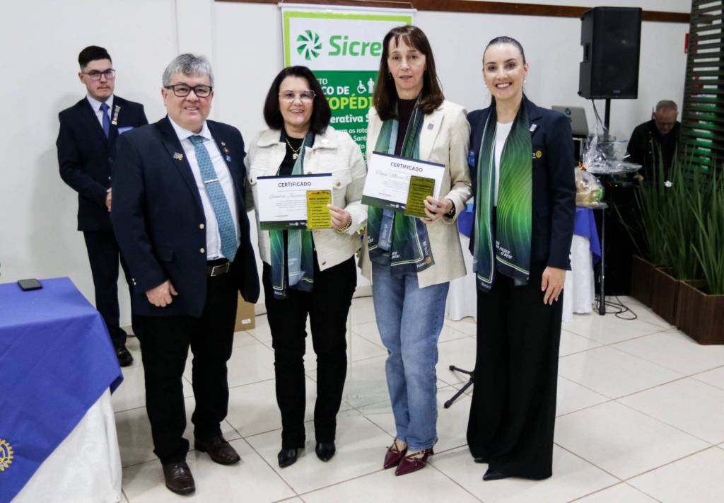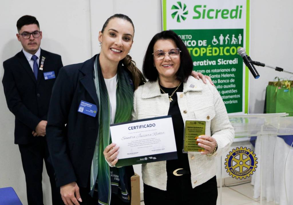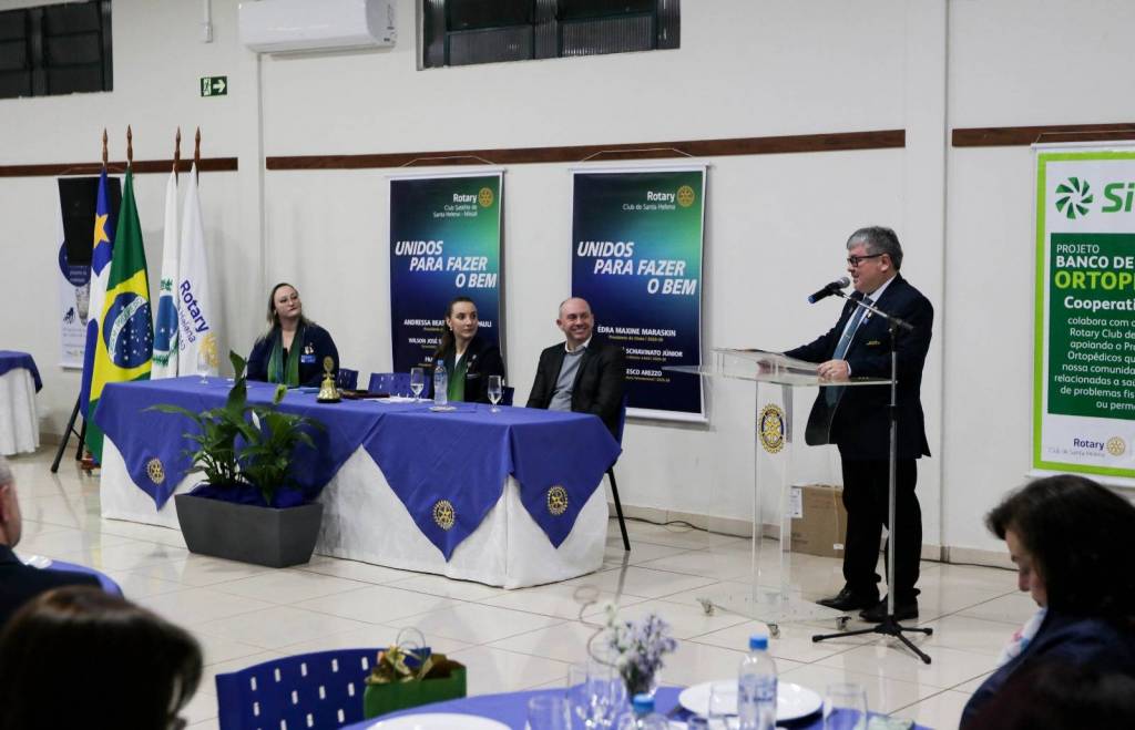 Encerrando a programação, foi realizada uma festiva na sede do Rotary Club de Santa Helena, marcada pela readmissão das companheiras Sandra Richter e Tânia Mafini. O evento contou com a presença de representantes do Sicredi, entre eles o gerente regional Éder Luiz Bley a gerente local Lisa, que anunciaram novo aporte financeiro em apoio ao Banco de Ortopédicos, projeto de grande relevância comunitária.
